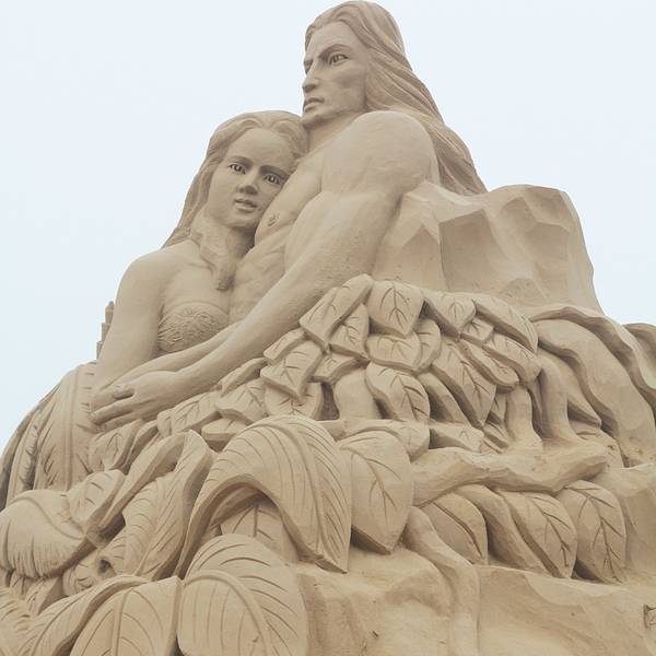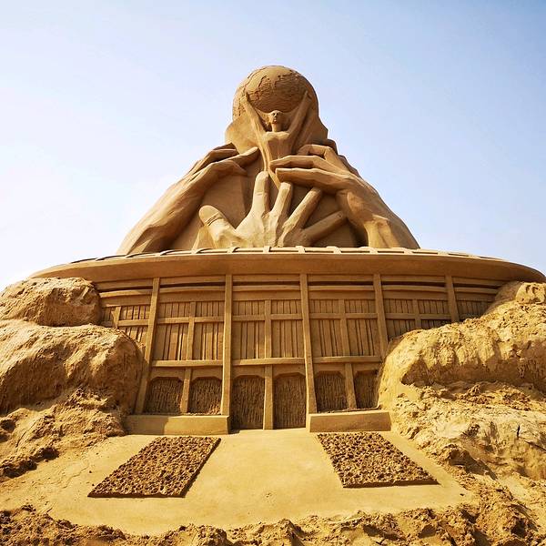 欣赏形态各异的沙雕作品,游泳、玩沙子,DIY一件自己的沙雕。