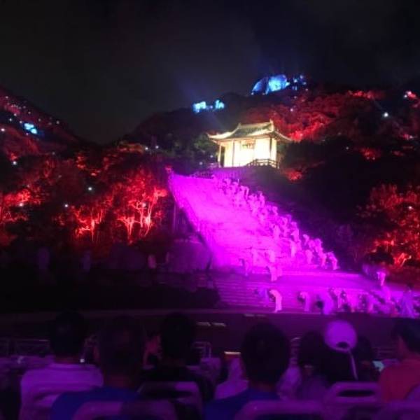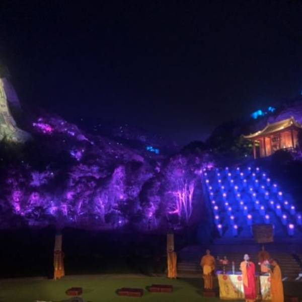 场景布置都是围绕巨大的观音壁画,依靠灯光的配合演员的一场演出,放下浮躁的心灵。体验观音文化。
