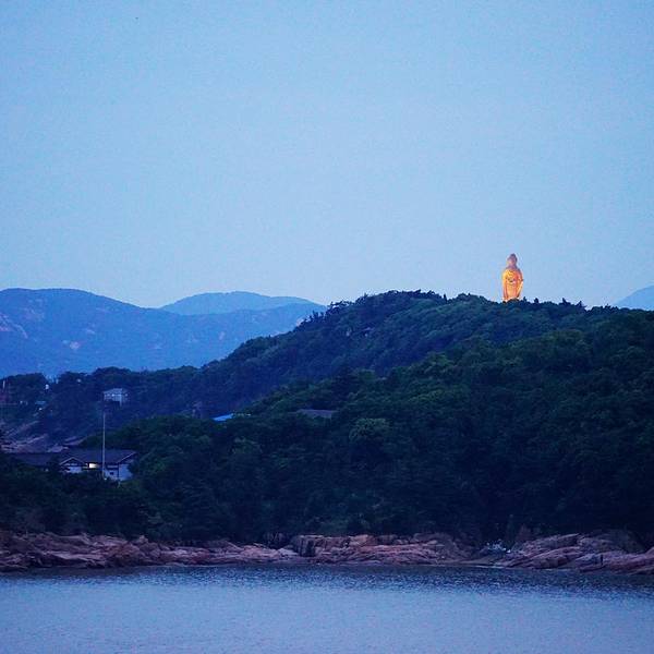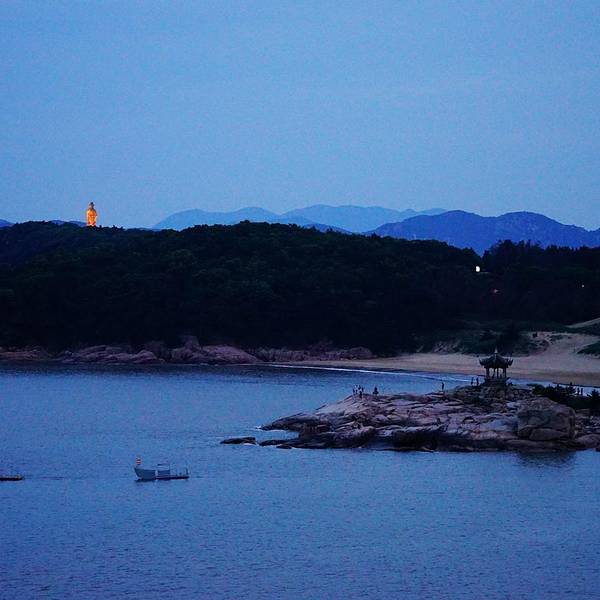虽然这里是看日出的,但是看看日落时分的百步沙也很美,而且也很独特,可以彰显逼格时间晚了,景区车也没有了,不过不要紧,法雨寺可以步行到普济寺,也就是穿过千步沙的距离,不是很远。途中有大乘庵,也是座规模宏大的寺庙,在普陀山仅次于普济寺和法雨寺。照片难看,就不放了。