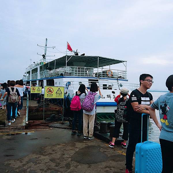 海水果然不会很蓝,但是在甲板上吹吹风,拍拍照,也是转眼就到庙子湖了 展开