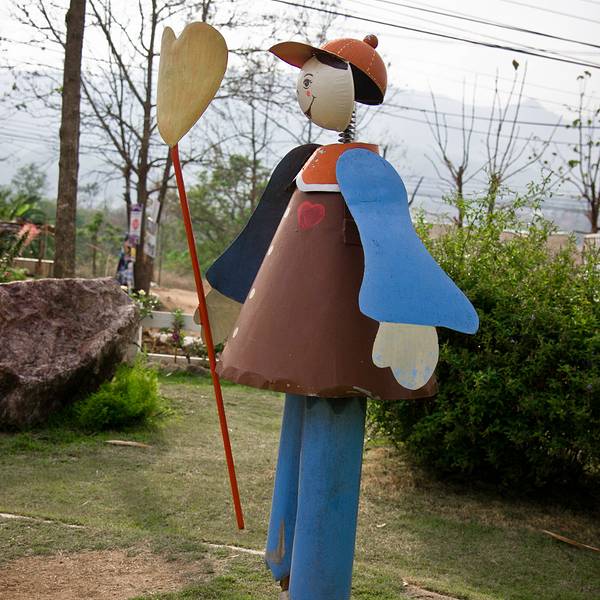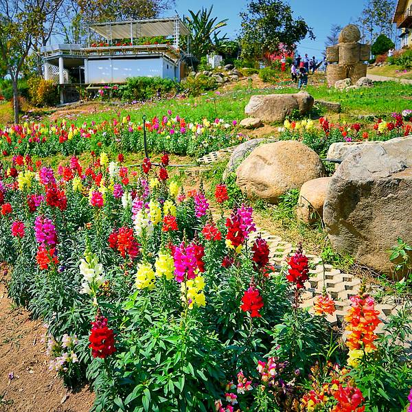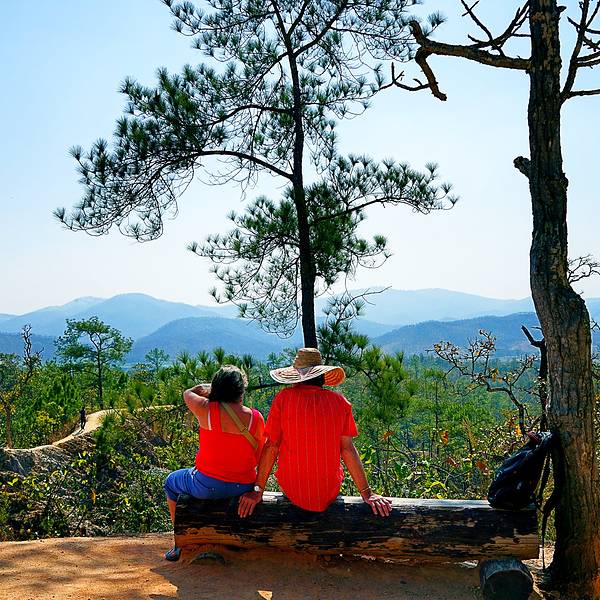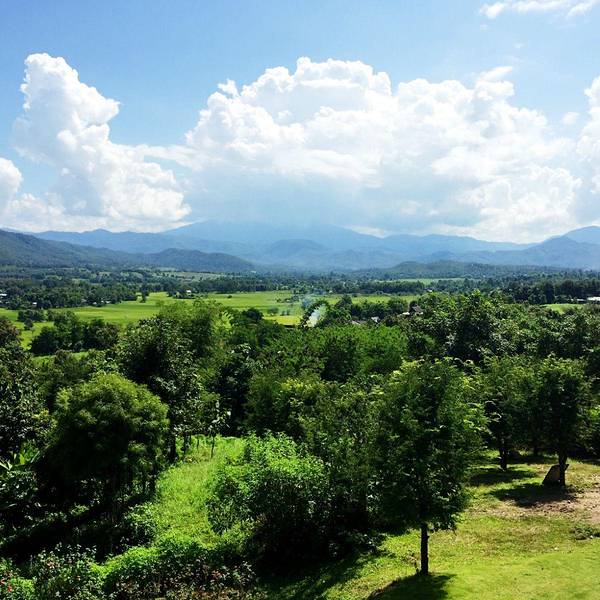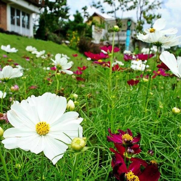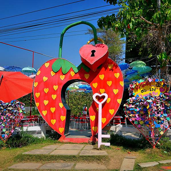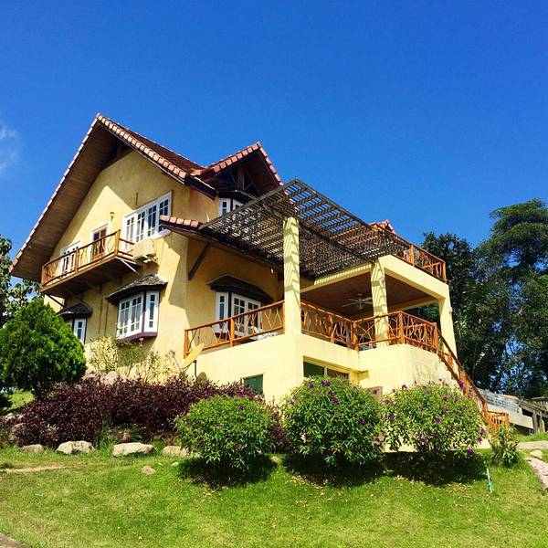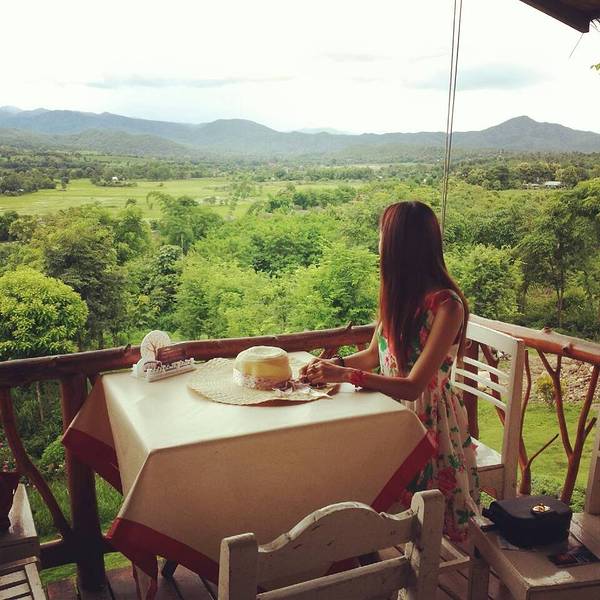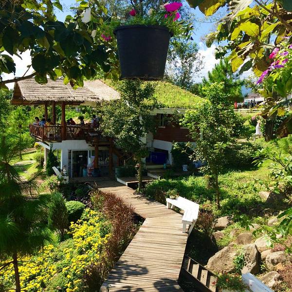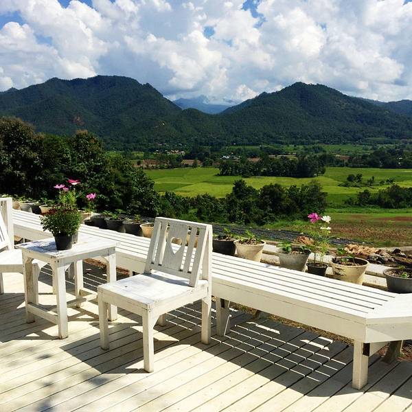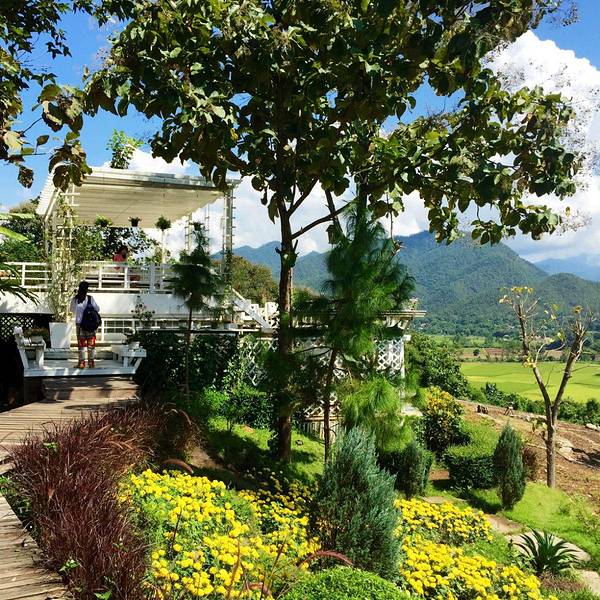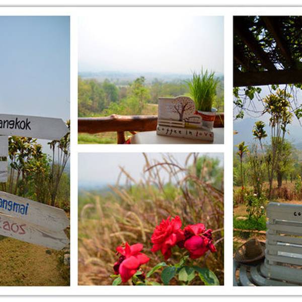 著名的COFFEE IN LOVE,其实是很小的一家咖啡店,木架子搭成的小房子。说实话饮品味道很一般,不贵40泰铢左右。服务员很友好的配合我拍摄,哈哈!下次各位去的时候记得拿这张照片给她们看哦!花很美吧?不过不是漫山遍野的哦,只是一小堆一小堆的,明显人工种养的。COFFEE IN LOVE左边的一家酒店,没什么人气,不过里面倒是蛮漂亮的,但我们不打算住这里,因为还得赶回清迈,而且感觉住这里会很多蚊子,哈哈!酒店里都是各种风格的独栋小别墅,估计价格也不便宜,一个客人都没有看到进出。酒店里的大树观景台,树右边还吊着一个秋千。