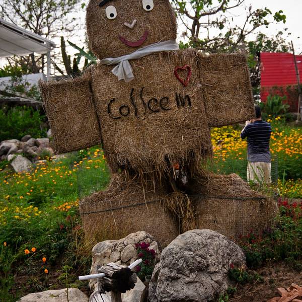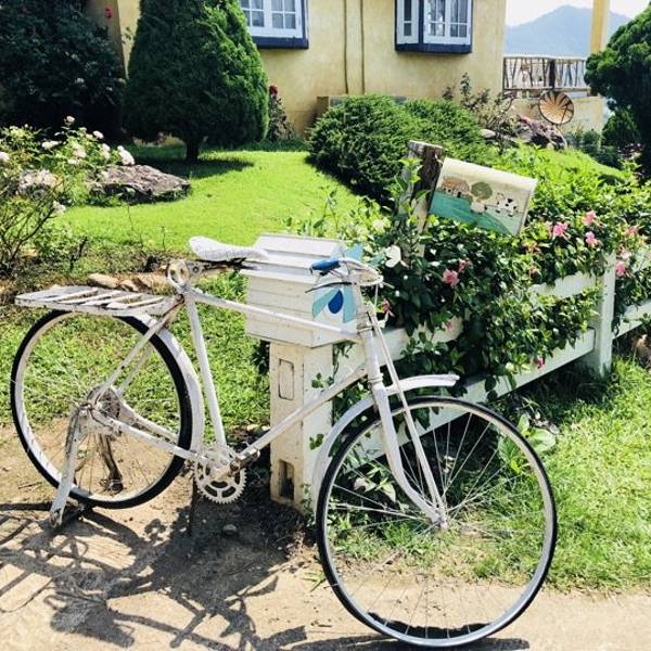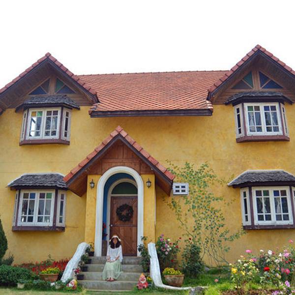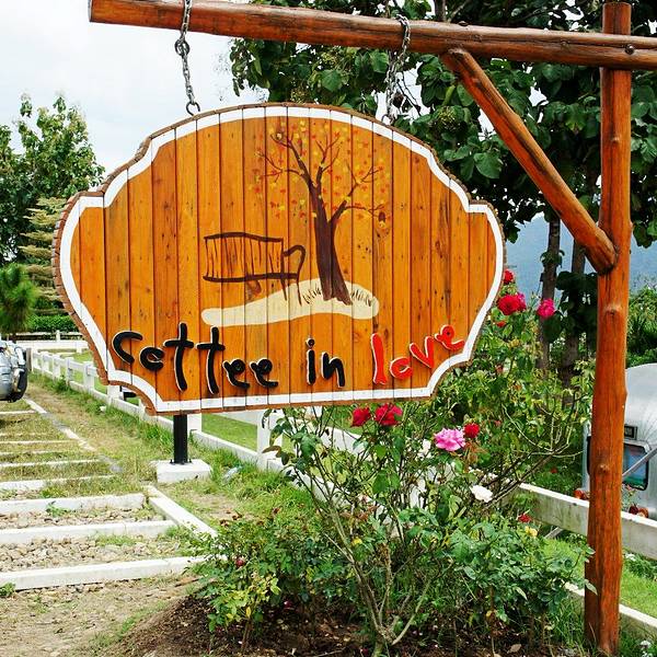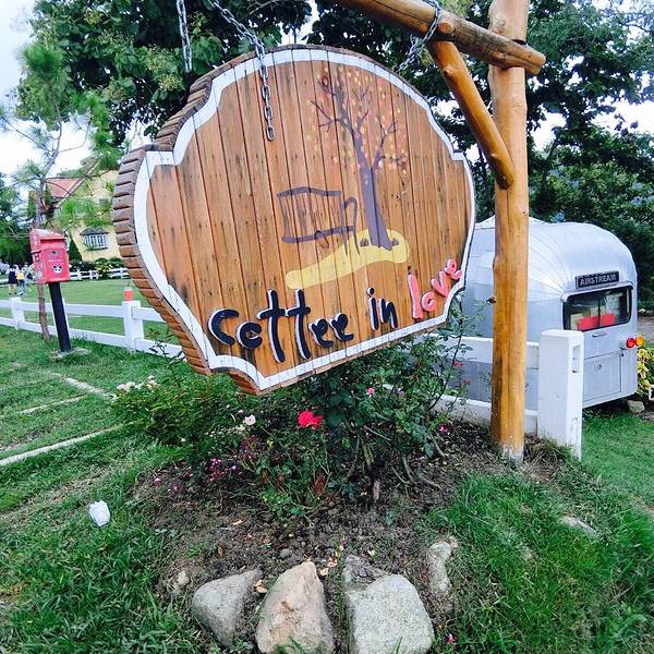 Coffee in Love是一幢充满童话气息的黄色小洋房,放置了几张白色桌椅的观景平台,一间小小的咖啡屋,一辆老旧的红色卡车,漂亮而精致的指示牌,绿色的小草、各色小花遍布其间。而这一切的背景则是大片绿油油的田野和同样是绿色的连绵起伏的山峦。单是在咖啡屋里边喝咖啡边赏美景就能耗上一整天的时间,决不会有无聊烦闷之感。