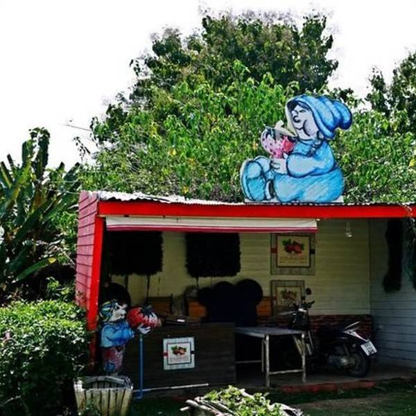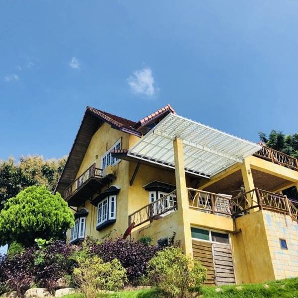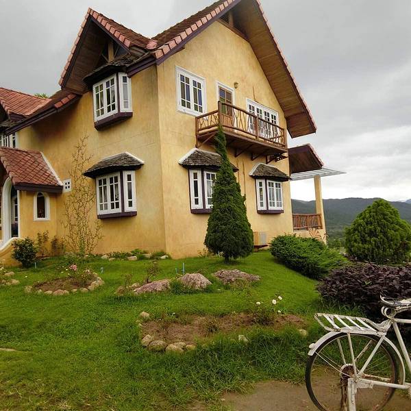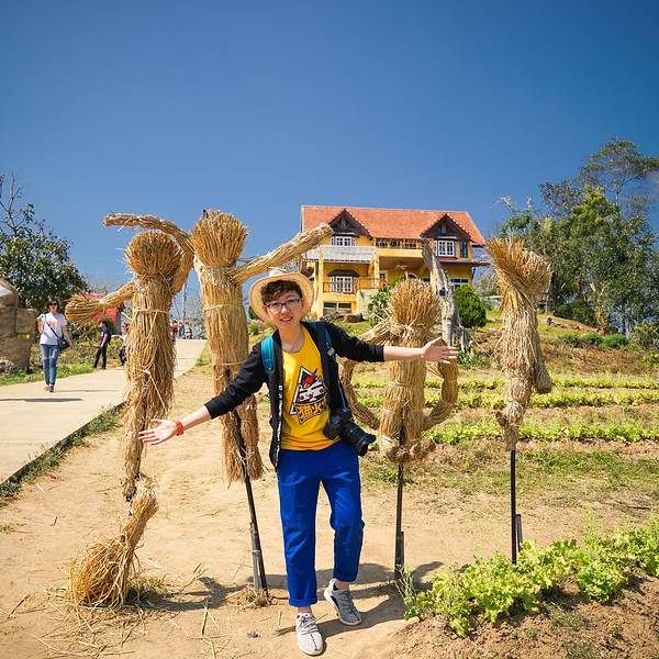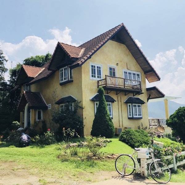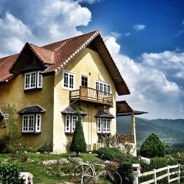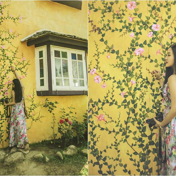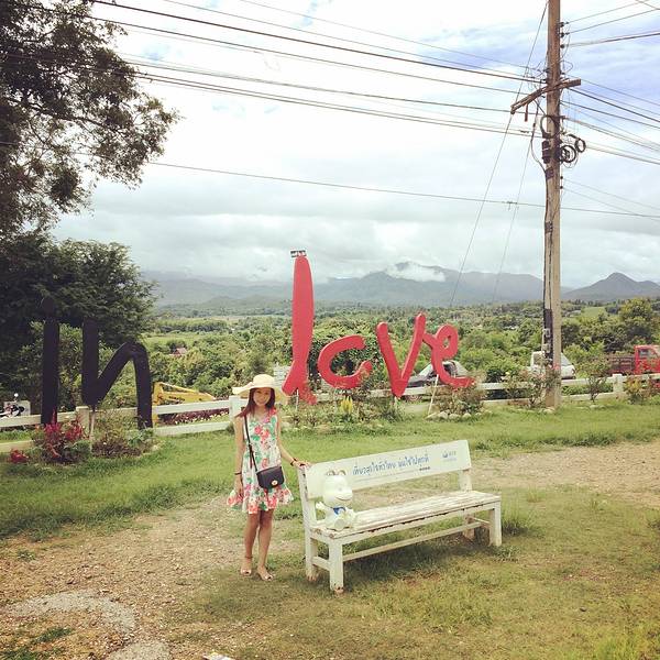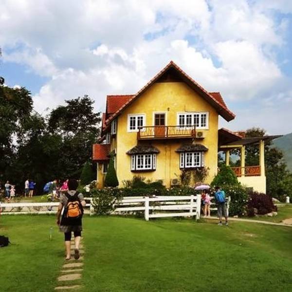 这里是拍泰国电影《pai in love》而盖,在黄色小屋及咖啡馆coffee in love上面是开放式咖啡馆,下面是牧场。这里风景漂亮,蓝天白云,空气清醒,黄色的小房子在蓝天的衬托下格外鲜亮。放置了几张白色桌椅的观景平台,一间小小的咖啡屋,一辆老旧的红色卡车,漂亮而精致的指示牌,绿色的小草、各色小花遍布其间。而这一切的背景则是大片绿油油的田野和同样是绿色的连绵起伏的山峦。