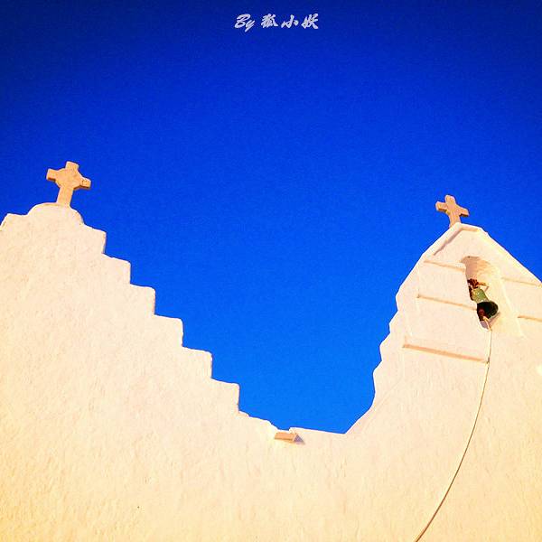 我们走到了米岛明信片上的风景,好像雪雕似的白色教堂,充满着神圣、圣洁