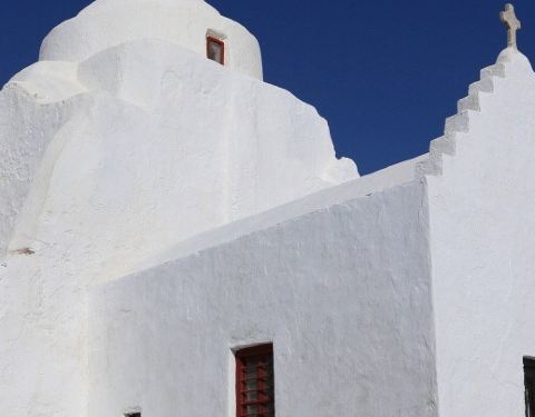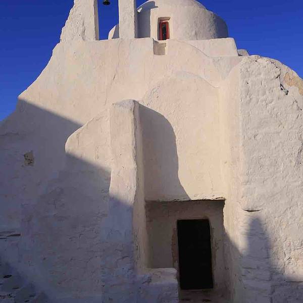 岛上有一座纯白教堂——帕拉波尔提亚尼教堂,意为边门圣母,是米克诺斯岛的标志。