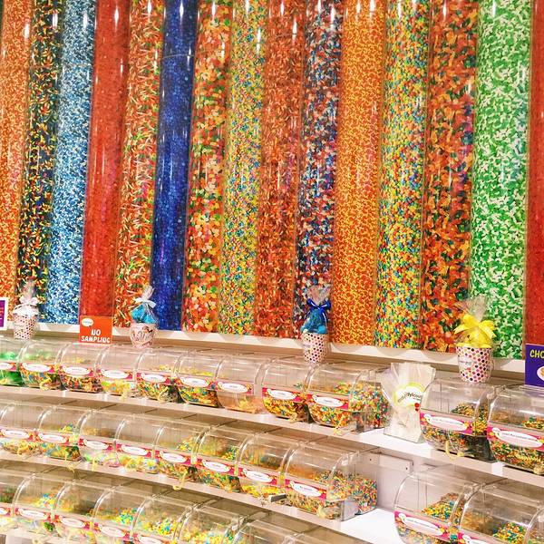 - 那边还能逛逛糖果店,五颜六色的糖果令人爱...