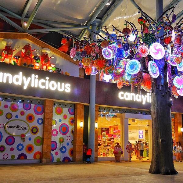 Candylicious 创办人是一对新加坡兄妹,他们在杜拜创办了全世界最大的糖果店后,将经验带回新加坡,并在圣淘沙建立一个以食糖会开心会理念的大型糖果店。店外巨大棒棒糖、数不清的巧克力加上五彩缤纷的糖果树,令人彷彿置身于糖果世界之中。店内的糖果及巧克力琳瑯满目,全部均来自世界各地,包括 Madelaine chocolates、M&M、Jelly Belly 等,游客还可以在店内自製 Candylicious 新地,为它加上自已喜欢的糖果。