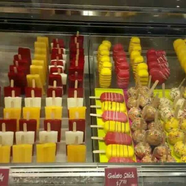 走进店里面,琳琅满目的糖果,基本上都是一些比较常见的糖果,最最漂亮的就是糖果城墙,非常漂亮,很震撼。有软糖城墙和硬糖城墙2种,五彩缤纷的,好看极了。这里的糖果价格并不便宜,像是巧克力或者硬糖价格都要比机场贵一些。彩虹城墙的糖是自取的,价格也不便宜,最少要拿50g起售。总体感觉一般般吧,大多都是玩完环球影城出来兜兜的。里面也有卖饮品和冰淇淋的,源自意大利某品牌的冰淇淋,30元人民币一个,价格还行,但是我没有买,买冰淇淋的人还挺多的。