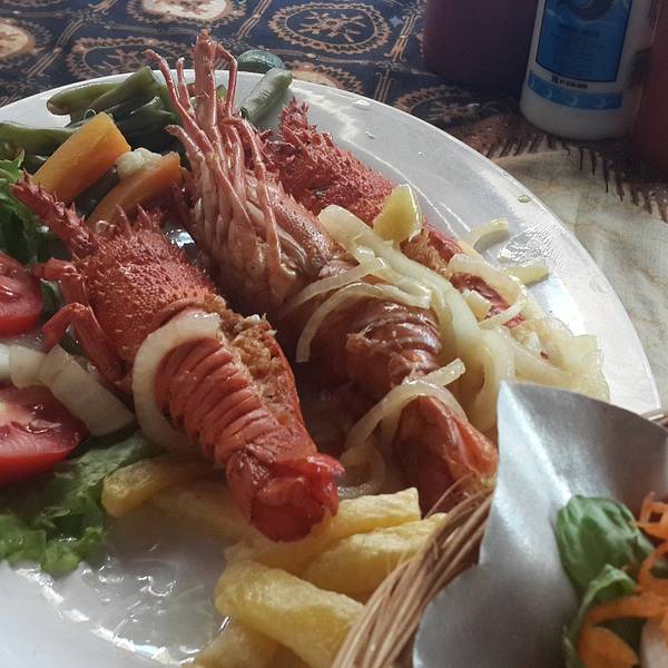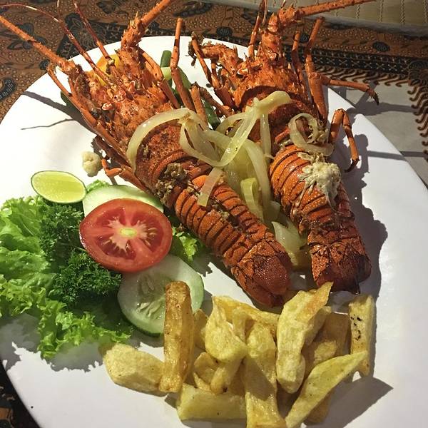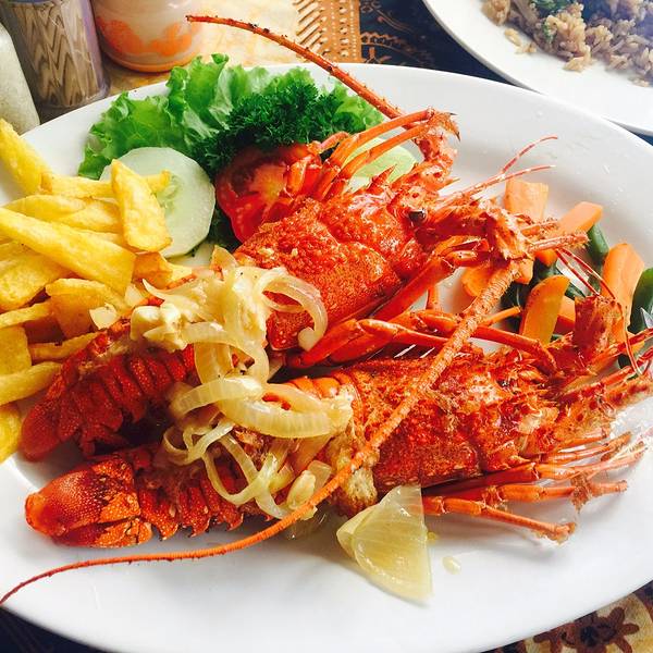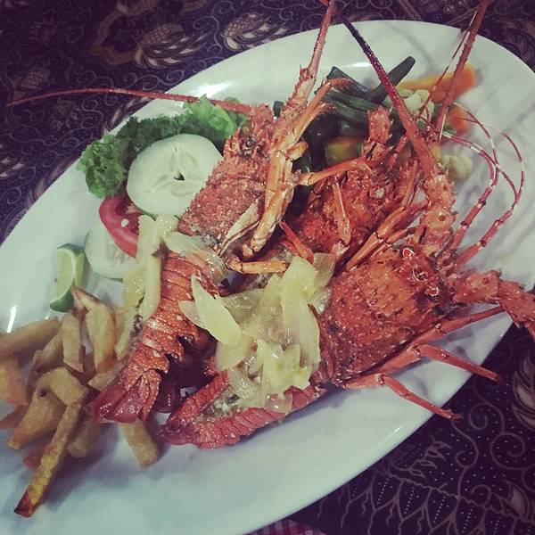 龙虾(lobster)Rp.150000=¥79,一对大大的龙虾,看起来...位于 Jl Poppies Lane I No 26, Kuta(谷歌地图导一下,超级准),库塔本土小店,印尼菜色,庙小名气大,便宜到没有朋友,海鲜以炸制为主,性价比超级高。