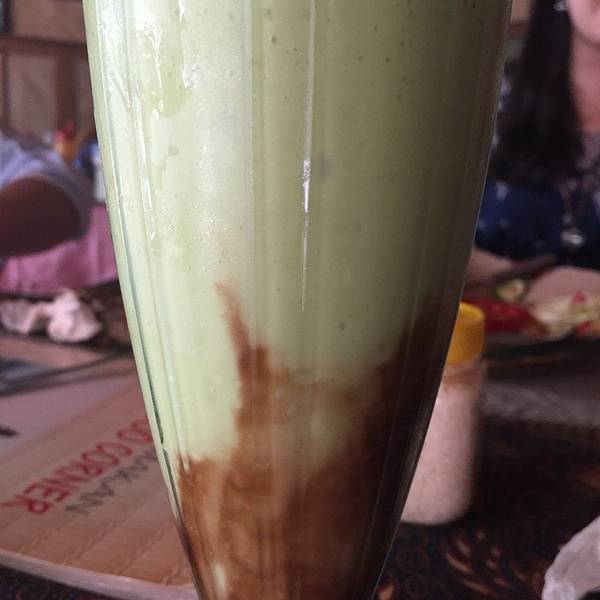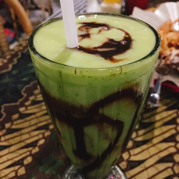 牛油果汁(Avocado Juice),Rp.15000=¥8,强烈推荐,太好喝了,性价比超高,香甜牛油果汁里还有巧克力,丝滑浓郁,香气逼人。