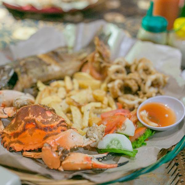 逛完海滩,我们就去寻找很多攻略中提到的平价海鲜餐厅bamboo corner。很不好找,七拐八拐的,走得腿都快断了,终于被我们发现了。不过物有所值,超级便宜而且好吃。我们点了鲜榨果汁,印尼炒饭,大龙虾篮,海鲜篮...