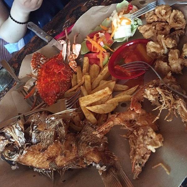 位于 Jl Poppies Lane I No 26, Kuta(谷歌地图导一下,超级准),库塔本土小店,印尼菜色,庙小名气大,便宜到没有朋友,海鲜以炸制为主,性价比超级高。
