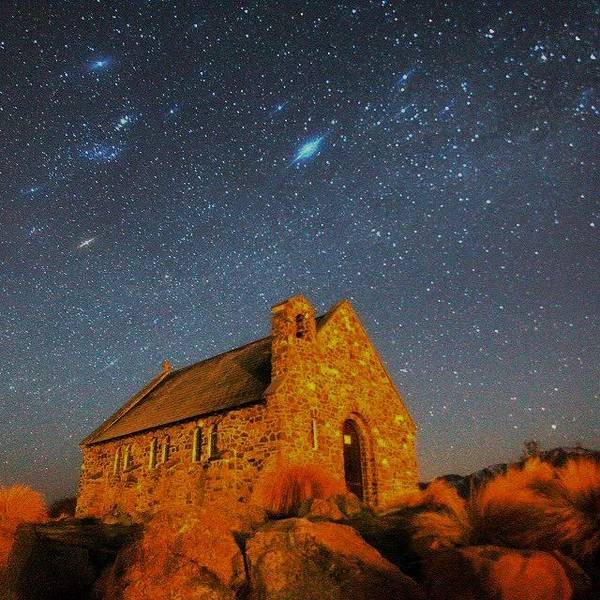 小镇Tekapo因其璀璨的星空而闻名,是世界上第一个向联合国教科文组织提交“星空自然保护区”的地区,2012年,小镇所在的盆地通过认证成为“国际黑暗天空保护区”。仰望夜空,繁星点点,甚至可以清晰地看到银河系...
