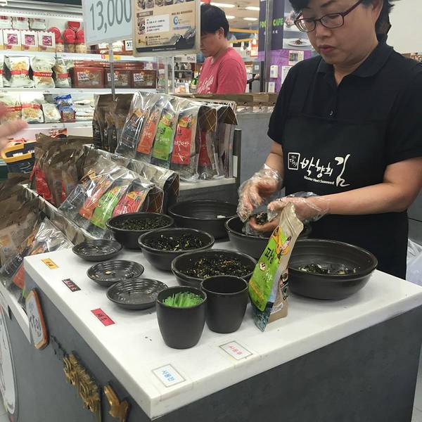 店内亦容易找到韩国人气手信的商品,如紫菜、泡菜、大酱、饼干等,不过Emart超市相对较少找到乐天的产…