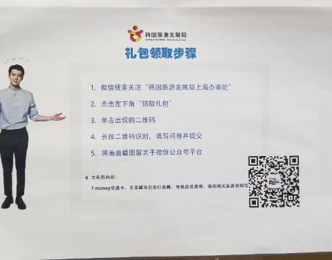 韩国旅游发展局在中国好多城市设立了办事处,凭有效韩国签证免费领取大礼包,里面有Tmoney卡,书,地铁,优惠券等等,而且服务态度超级好,可以提供很多自由行建议。