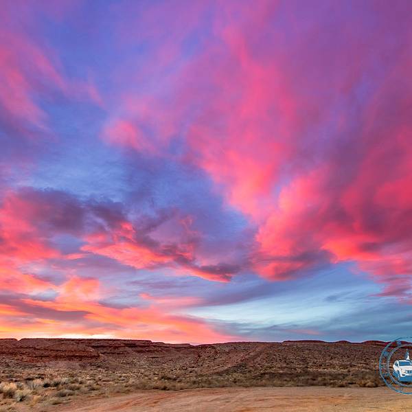 天空瞬间被染成了红色,正在开车的我马上慌了起来,赶快找了个宽敞的地方,停车拍照纪念碑谷