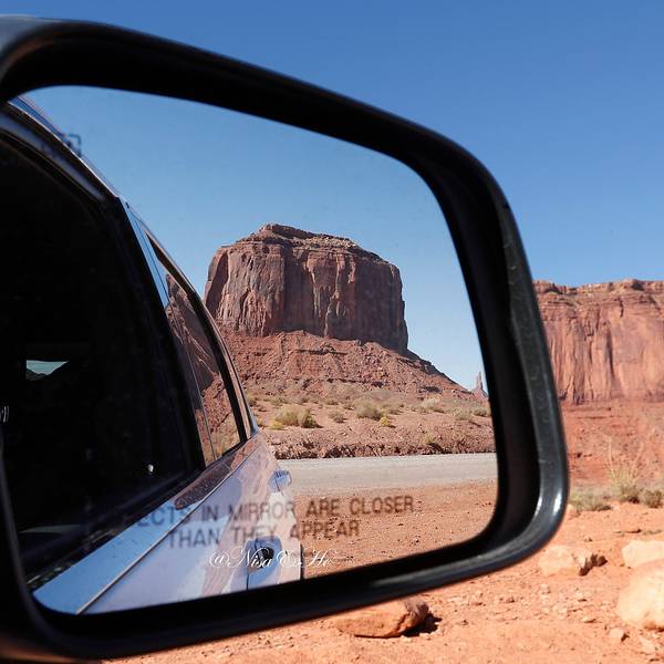 纪念碑谷Monument Valley:不属于国家公园,$5/车。后视镜的风景也是很有味道的进入犹他州,需要调快1小时。