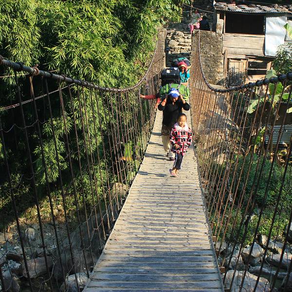 从博卡拉到徒步的起点NAYAPUL大约1.5小时车程,这座铁桥,是徒步起点和终点,大环小环交叉点的重要标志