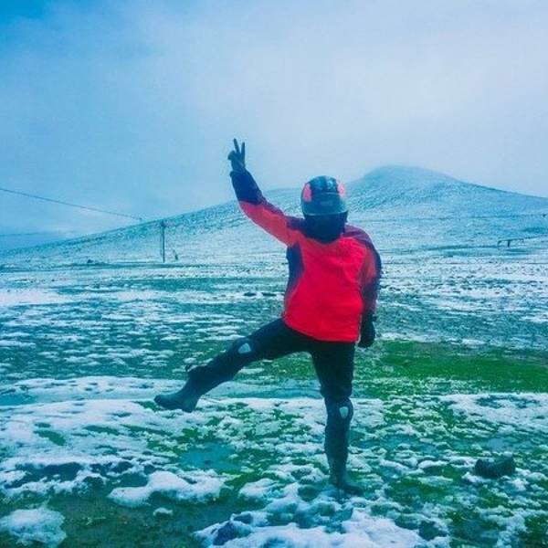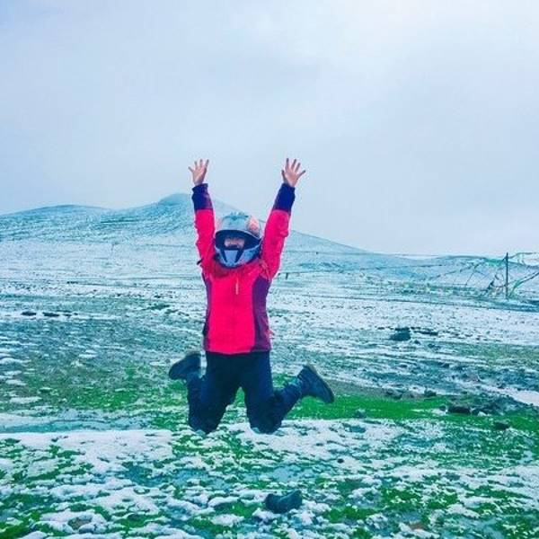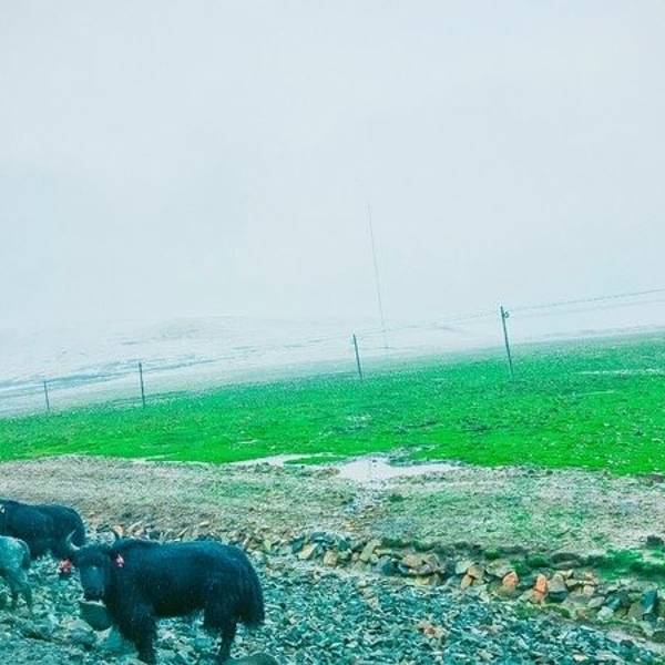 那天的朋友圈我说【第十三天:定日白坝镇-珠峰大本营-定日白坝镇,完美的一天,去年游记结尾的承诺,今日的兑现,当你亲眼见到大片中才有风景时,你才知道来一趟是值得的,当你见到碰运气才能见到的珠峰时,你有说不出的激动,当你气喘吁吁的在海拔5200+的海拔上摆弄石头时你知道你自己的心,当你在最高的邮局写明信片时你知道你思念的都有谁,不管路有多弯多拐,你始终坚定,那就是你。】 到定日白坝镇休息一晚后,就开始了此次旅行的回程了,但是不走回头路的我们,当然不会选择在走一遍搓衣板路,我们硬着头皮相信摩托车可以走正在修的318国道,于是我们浩浩荡荡的向着正在修路的加错拉山进发了。走了一截路都不错,也没人阻拦说不让上,直到路边出现了一个小帐篷⛺️⛺️⛺️,还用一个小绳子拦着。文明的我们喊了半天才出来两个守路的藏族父子。他们会的汉语有限,一个劲儿的说不让过,如果过了老板会扣他们钱💰💰💰,说到钱真的不是很亲热,但是我们开始了软磨硬泡,各种说我们要回家,没办法,我们听人说摩托车可以走,并且那块牌子上也确实没说摩托车不可以走,但是父子倆一直就那句话让我们过去了老板要扣钱。僵持不下,我看旁边下面有自行车过的痕迹,于是我跑下去探路,给他们的暗示是我们就算从下面过也要过。没想到这招灵了,等我上来二人就放我们过去了,害我后半程一直同情他们的钱会不会被扣掉。不过他们到底是善良的,愿好人一生平安。 小雨淅淅,冷的刺骨,越往前开越冷的受不了。终于看到了冷的原因,因为远处惊现了雪山。木木酱打趣儿到,一会儿我们跑上去玩会儿雪❄️❄️❄️吧。想什么了,心里虽然很想,但是海拔太高,冷,再说还赶路了。不一会儿,真想大白,原来昨天晚上下雪了,看着车上还垫着雪花了。真不要以为这段路比搓衣板好多少,走完修好的部分,直接开入沟中(新挖出来没有倒水泥的路坑),由于下雪,雪化后和着泥土一起给我们制造难题,坑之深浅不知,小黑一瘸一拐的蹒跚前进,木木酱筒靴已经沾满了泥水,因为每过一个深坑,都是他用双脚去稳住小黑的。👆👆👆👆👆👆上面那张图根本无法表达路之烂,因为烂路的地方我不敢拍照,随时准备滚下去,但是人能滚,手机千万不能。但是终于成功的攀爬上加错拉山,看到了好路,看到了雪山,那还说什么———玩雪吧,造作吧。大夏天我们尽情的玩着雪,尽情的打着抖,却还依然蹦的老高。各种录视频发在朋友圈给已经热成狗的只能卷在空调房的重庆小伙伴们降温。 8月1日我在朋友圈说【第十四天:定日白坝-日喀则,不走重复的路的好处就是完全不一样的风景,去时走了一条搓衣板路,艳阳高照,四面如沙漠,回时走正在翻修的318国道,大雪纷飞,远远望去的时候,木木先森还问我要不要去玩雪,一会儿雪花就出现在脚下,所以不要在问我穿这么多不热吗?答案是我将所有的衣服都穿上了还冷的不行。同样也不要问我为什么穿同一件衣服,答案是带了裙子等美衣根本用不上,能用上的只有这件冲锋衣。】 去时的路、回时的路;去时的天,回时的天;搓衣板、在修路;阳光、雨水、冰雹、大雪;所有这一切一起构成了这次完美的珠峰行。
