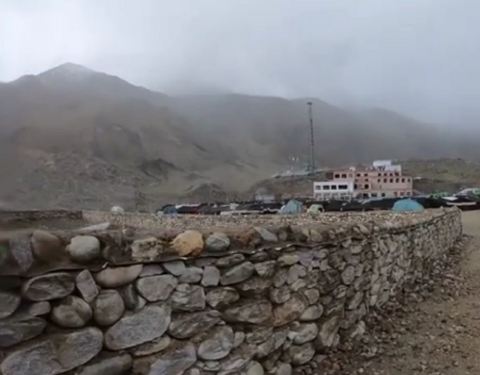 整个山口的海拔也太高了,这是珠穆朗玛峰大本营的必经之地。整个伤口有非常多的精度,挂满了,而且在这里风景还算可以,基本周边都是雪山!