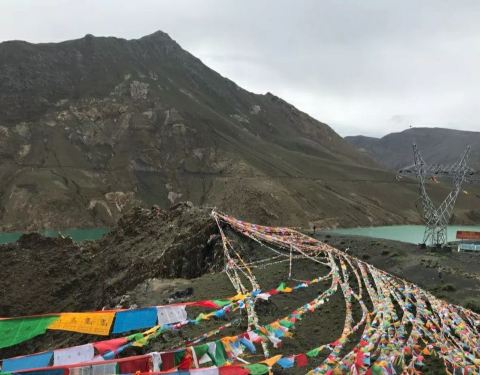 我们来到这里,也是顺道打个卡在水库上,屹立着石碑,同时也有许多藏民在这里售卖经幡