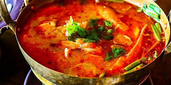 冬荫功汤带一点酸带一点点辣,又因为有虾之类的,非常鲜美