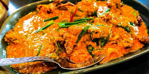 冬荫功汤带一点酸带一点点辣,又因为有虾之类的,非常鲜美。由新鲜海蟹烧成的泰式咖喱蟹,咖喱中加上了鸡蛋,显得很粘稠。这里还提供钳子,用来剥蟹肉。