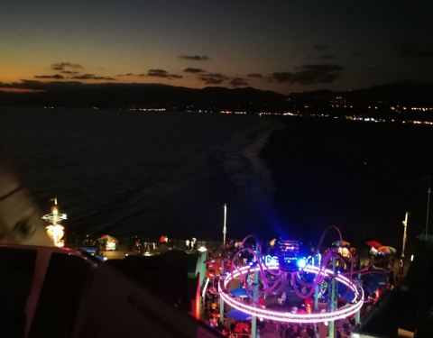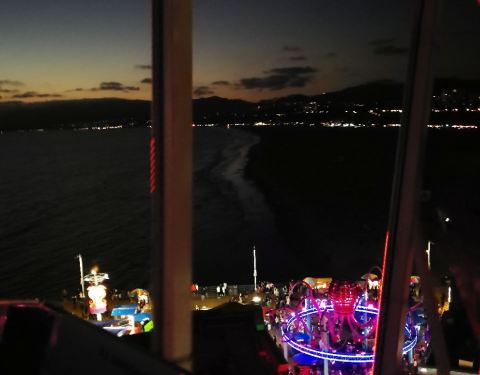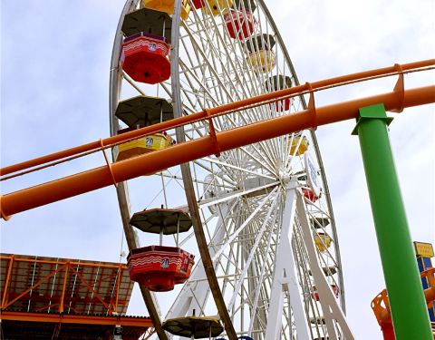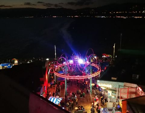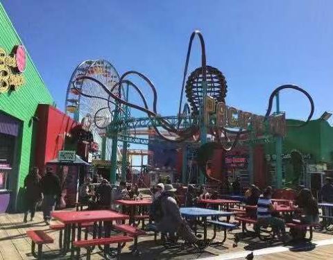 太平洋公园(Pacific Park)是圣塔莫妮卡码头上的一个小型游乐园,有过山车、摩天轮、海盗船等游乐设施,不过就惊险程度来说还是有点弱的,毕竟是建在木头码头上,要考虑到承重等因素。挺适合亲子游。