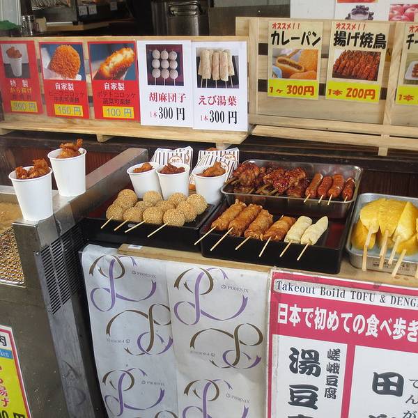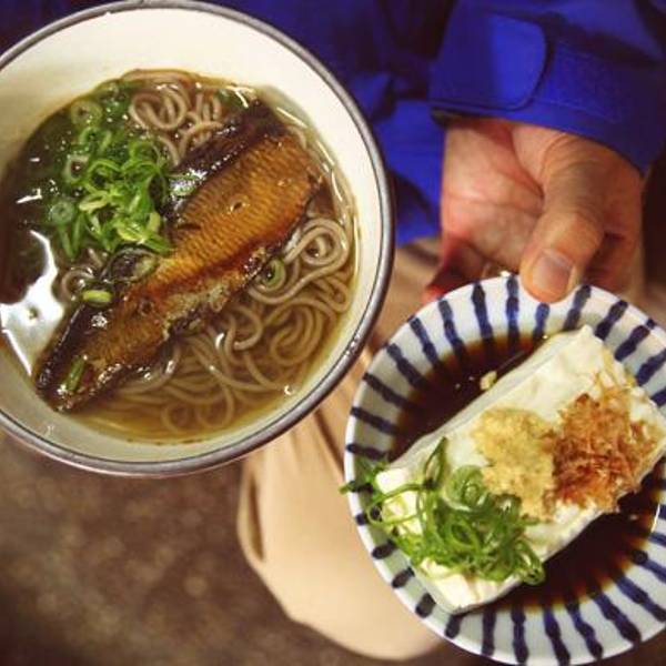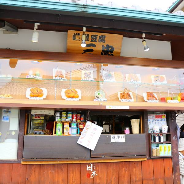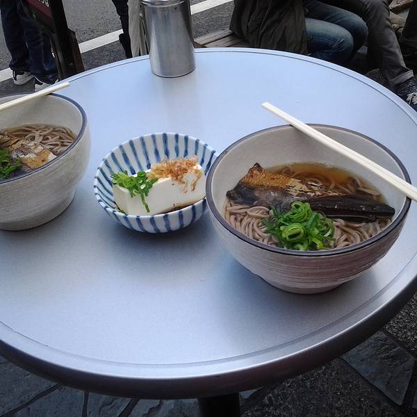 到了天龙寺门口还未见到传说中的三忠豆腐,看看商店街的指向从天龙寺门口再往前走了约300米,我们还在抬着头研究到底吃什么,正打算用英语跟服务员说的时候,小姑娘利索的说“说中文!”哈哈哈哈!买了小气少年推荐的什么鱼荞麦面和豆腐,鱼很好吃,看上去不好看,单位味道棒极了!旁边的小桌正好无人,在街上站着一通狼吞虎咽。