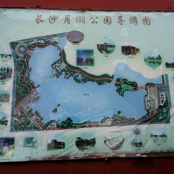 长沙月湖公园和常见的市民公园其实差不多。不过是免费的、而且位置很方便、没事可以来这散散心、溜溜弯啥的也是一个不错的选择呢。 【简介】月湖公园位于长沙三一大道和万家丽北路交汇处。长沙大学对面就是公园的后门、离湖南广电中心也不远、我们就是在世界之窗广电那边坐公交过来的、月湖公园的公交站有 122路 132路 136路 142路等多路公交的、交通还算方便。 应该说这是一个以山水风景为主题的市民公园。 要是在长沙大学有朋友的话、来看朋友的时候就可以来这里散散步、聊聊天实在是再好不过了。 或者白天在世界之窗海底世界玩累了、但是还玩心未尽的话、也可以来这休息休息、吃点晚饭、烧烤啥的、并且这的消费也不算贵、照比长沙比较大的景点来说算是很便宜的了。公园的正门处种了许多花、可惜我们是从后门进来的、等逛完了才从正门出来。公园内有好几处这样的导览图、不过感觉没啥用、公园不算太大、一般逛一逛是不可能迷路的哈。月湖月湖嘛、月湖的水还是很美的、整个公园都是围绕着月湖为中心的、湖中有许多凉亭供游客歇息、可以通过木质的浮桥过去、设计的很人性化、也让人们更有贴近自然的感觉。湖边上还有市民公园所必备的各种娱乐项目、小吃、烧烤、游船、和一些小朋友的玩乐设施也算的上是一应俱全。湖中有许多莲花、我们去的时候是十月了、所以都已经凋谢了。这不算是什么著名的景点、但是来一次也不后悔的哈。