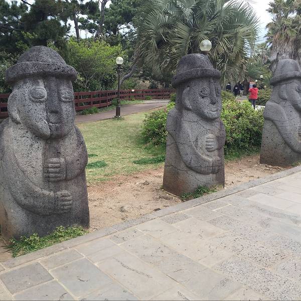 ...来准备步行去中文海水浴场,又看到了济州岛处处可见的石头老爷爷,为什么到处都有这样的石头老爷爷呢柱状节理带景区面积并不大,一下子就参观完了,参观完柱状节理带,上来准备步行去中文海水浴场,又看到了济州岛处处可见的石头老爷爷,为什么到处都有这样的石头老爷爷呢?~~原来这石头老爷爷是济州岛的吉祥物...柱状节理带景区面积并不大,一下子就参观完了,参观完柱状节理带,上来准备步行去中文海水浴场,又看到了济州岛处处可见的石头老爷爷,为什么到处都有这样的石头老爷爷呢?~~原来这石头老爷爷是济州岛的吉祥物,现在更是越过了五洲四洋,俨然充当起了韩国的形象大使,然而大多数人却不知道最初创造石头爷爷的目的却是为了生殖崇拜~~济州岛号称“韩国夏威夷”。岛上有著名的“三多”说法,即石头多、风多、女人多,其中石头是指一种独特的黑灰色火山石~~用它雕刻成的守护神被当地人亲切地叫作“石头爷爷”~~石头爷爷大多是眼睛凸出、鼻子粗大、嘴唇紧闭的样子。传说左手在上的石头爷爷是武官,右手在上的石头爷爷是文官~~摸摸石头爷爷的鼻子可以生儿子,摸摸石头爷爷的肚子和手则可以升官发财~~据说韩国情侣结婚后,必定要到济州岛,拜石头爷爷,以求多子多福~~我们一路循着导航走,都是海边,然后莹妹突然说你们快看,韩剧《秘密花园》的拍摄景点之一!莹妹是个韩剧迷,难怪一看就发现到了~~呵呵!真的是噢!树底下还放着大大的男女主人公的剧照~~我们也坐在树底下拍起照来 呵呵!无意间又发现了一个景点~~后来知道如果要在这儿住宿的话,酒店都要1000多块钱一晚,因为都是海边的度假酒店,景观好~~走了一会儿到了中文海水浴场,看到很多游客坐在下面的海滩边上边观景边吃生海鲜,这是独特的济州旅行体验噢~~本来想尝试一下海边观景吃海鲜的体验,同行的妹子不感兴趣就打消了念头~~感觉中文海水浴场有点像青岛的海滨浴场,天空下着小雨,我们都穿着便鞋,就不打算下去沙滩走了~~准备下一站去乐天免税店看看,同行的MM身负代购重任~ 展开