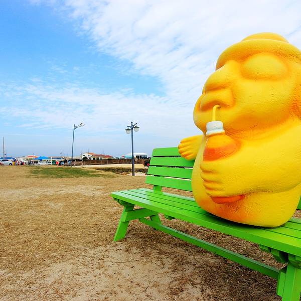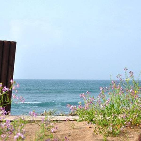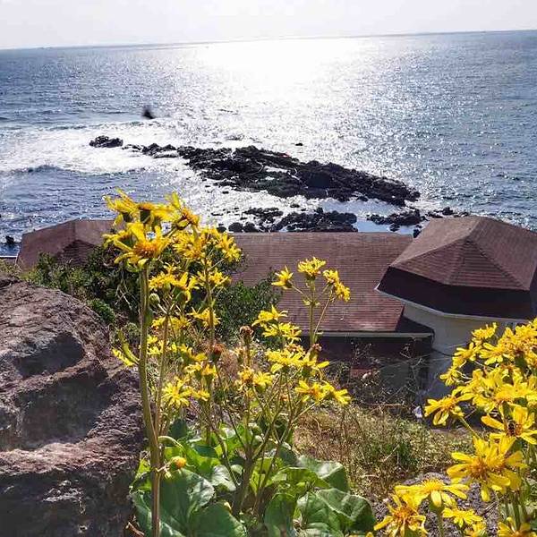 开始还以为是专门为中国游客设立的景点。趁着碧蓝水洗的天空和崖边的黄色野花,吹吹海风,宁静且美好中文海水浴场。开始还以为是专门为中国游客设立的景点。后来才知道不是。