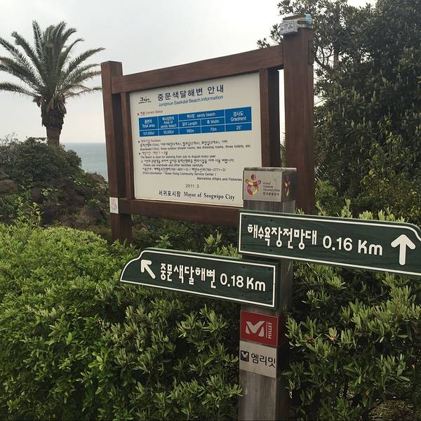 海水颜色清澈透亮,海滨陡峭浪很大,海滩上有做帆板生意的,大概这里也是极限运动圣地中文海水浴场位置在济州西归浦市的中文旅游区,是西归浦最受游人青睐的海边,中文海水浴场位于天地源瀑布下游,风景优美。长沙滩长度达500米。周边豪华酒店众多,离得最近的就是乐天酒店,在乐天酒店可以直接有一...中文海水浴场位置在济州西归浦市的中文旅游区,是西归浦最受游人青睐的海边,中文海水浴场位于天地源瀑布下游,风景优美。长沙滩长度达500米。周边豪华酒店众多,离得最近的就是乐天酒店,在乐天酒店可以直接有一条小路走到中文海水浴场,其他还有凯悦酒店和新罗酒店,凯悦酒店的海景房看到的就是这里的景色。从济州机场方向过去可以坐600路巴士,在中文区入口下车,天地渊瀑布,中文海水浴场还有柱状节理带可以作为一条旅行线路,离得不远。建议离开的时候可以选择走去乐天酒店那条小路,风景不错,而且可以顺便参观一下乐天酒店。东侧海岸由岩石构成,经过长年累月的海浪的冲蚀,奇岩怪石很多。海水颜色清澈透亮,海滨陡峭浪很大,海滩上有做帆板生意的,大概这里也是极限运动圣地。韩国当地的小朋友在玩沙子,在沙滩上还是隐约有一些礁石的,不算太安全。沙滩的另一边有一些做生意的海女,他们从海里直接捞上来新鲜的海鲜在海边售卖,有游客走过就热情的招呼一下。天然海鲜大排档,售卖的估计都是早晨捞上来的,有鲍鱼海蟹,很鲜活,大概每一把伞就是一个店家,就是一个海女的摊位。这样的小摊位在济州岛很常见。 展开