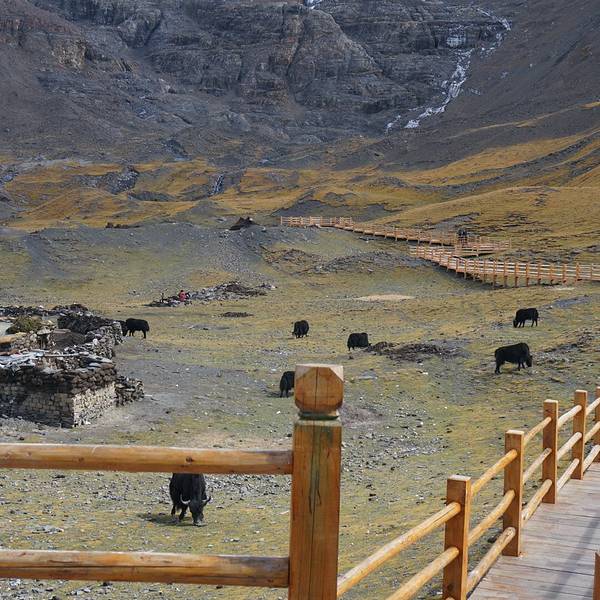 过江孜县不远,乃钦康桑雪山便出现在眼前,主峰宁金抗沙海拔7191米,电影《红河谷》中雪崩的镜头就是在这里拍摄。