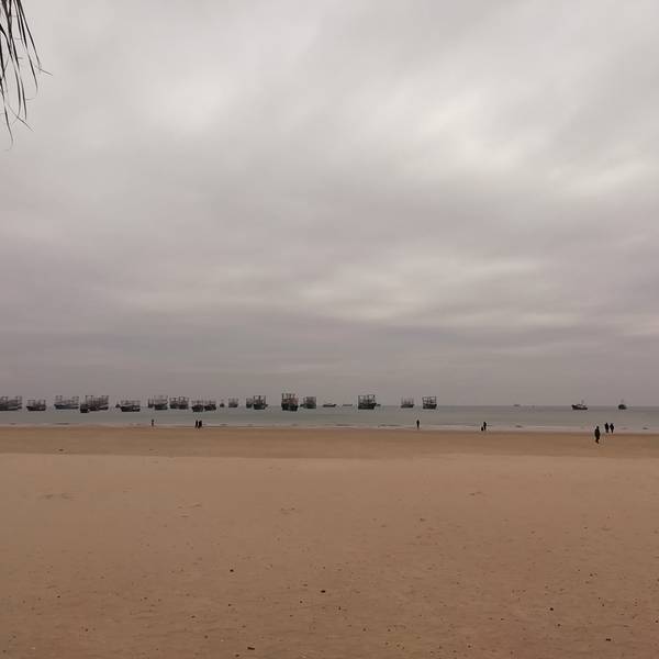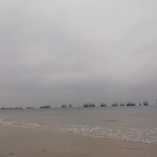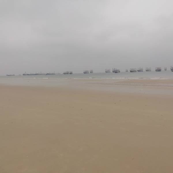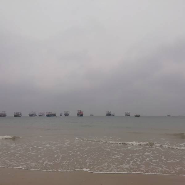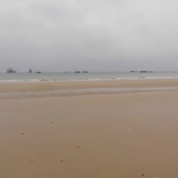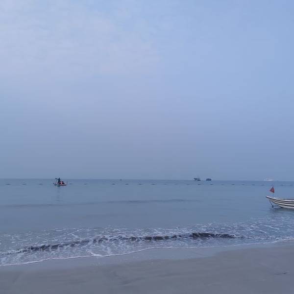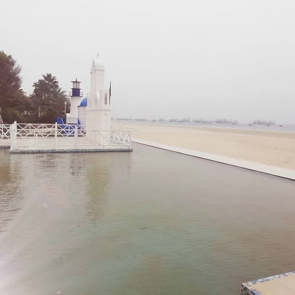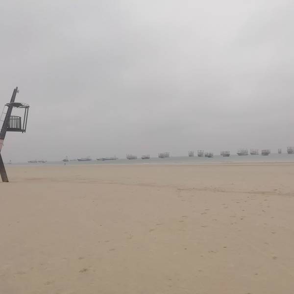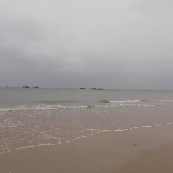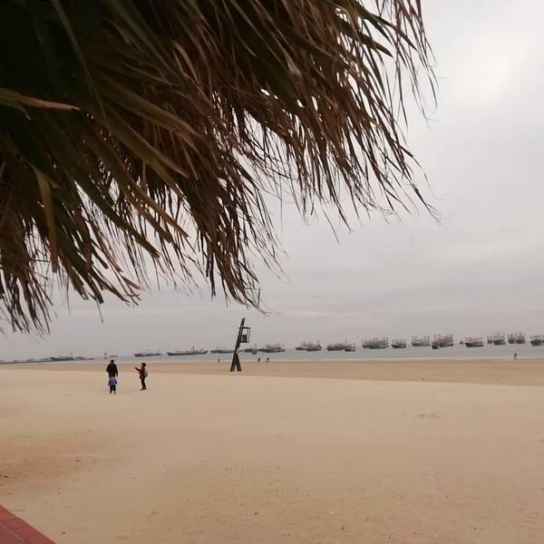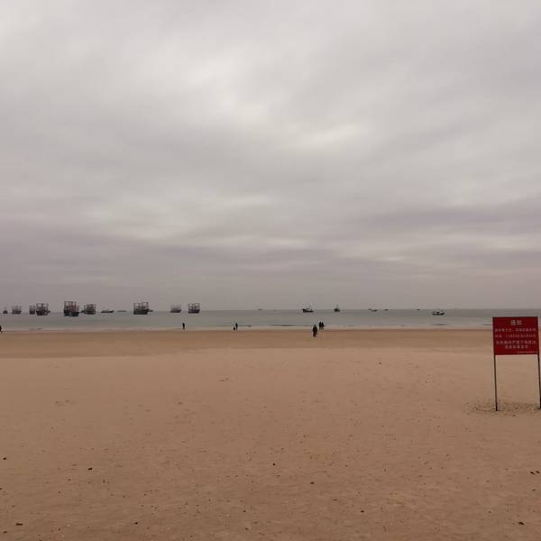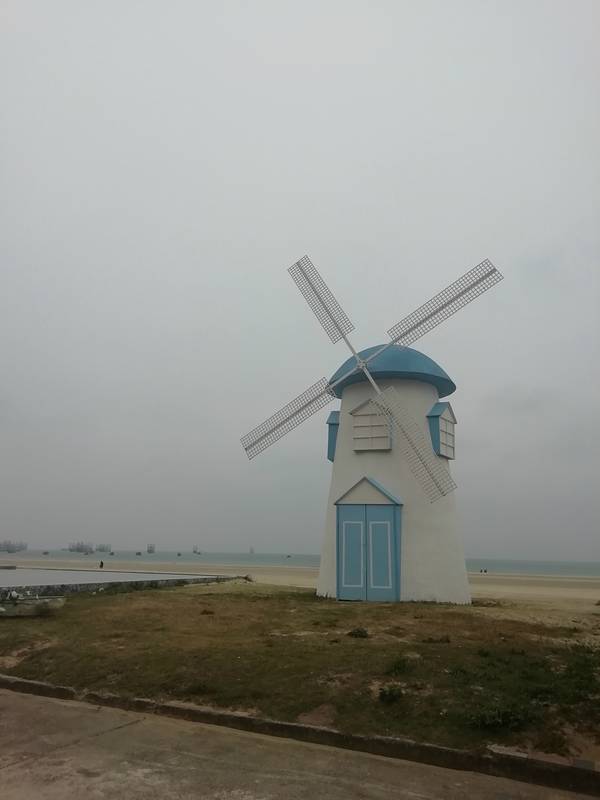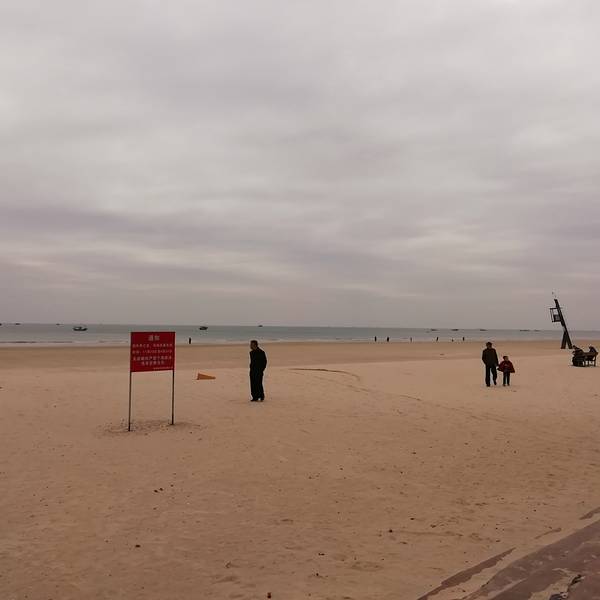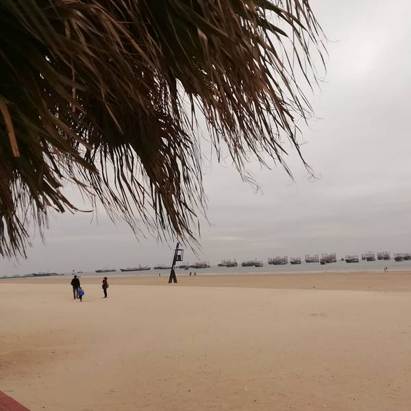 二、、侨港风情街不远处有海滩,天气好的时候观海,拍照都不错,不过我去的时候刚好天气不好,又是刮风,又是阴天,后来还下了点小雨,不过还不是很懒。(不过整个北海市的海域除了军事禁区旁边的一小块非对外营业的海滩的海域没受什么污染,其他都不怎么蓝,有些地方还泛黄。)