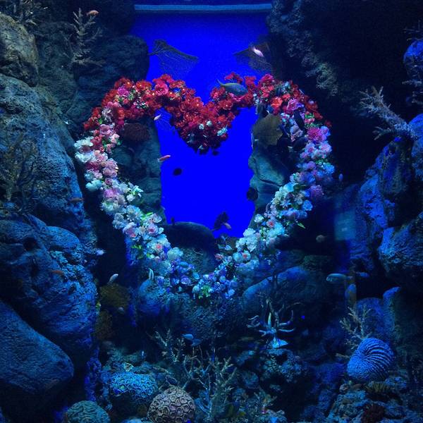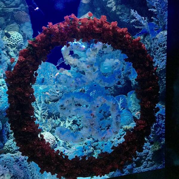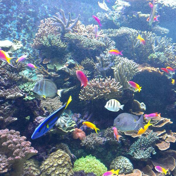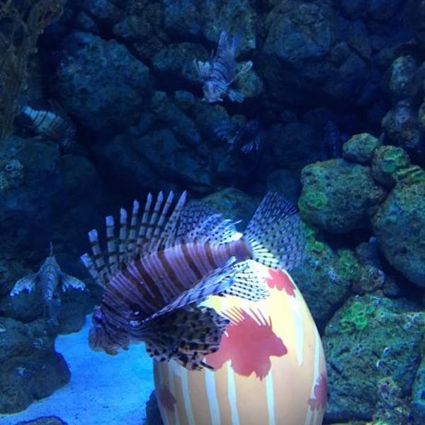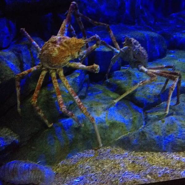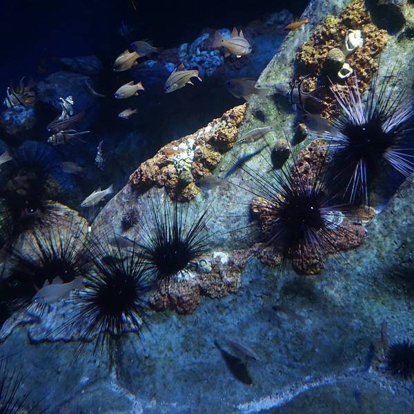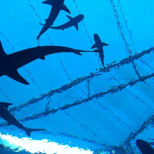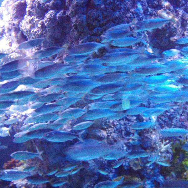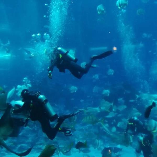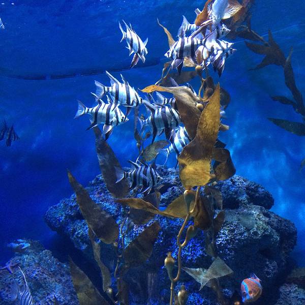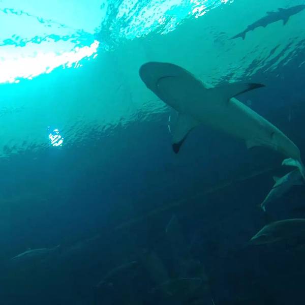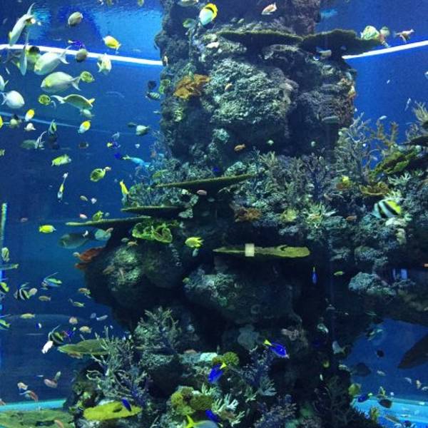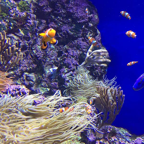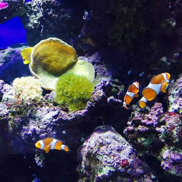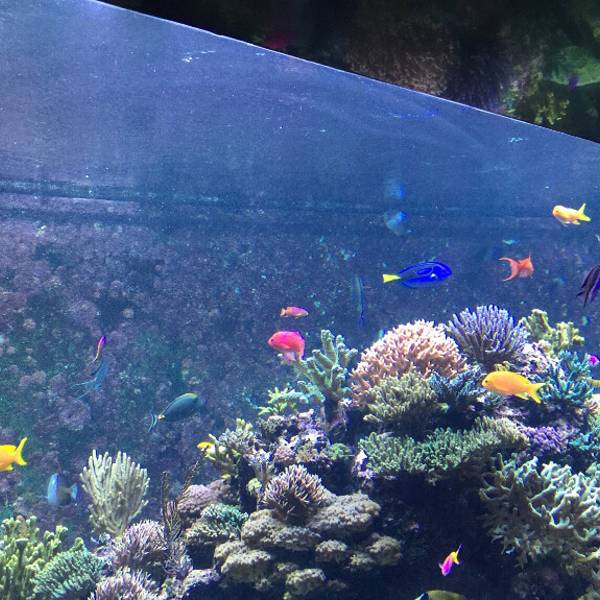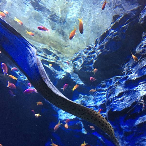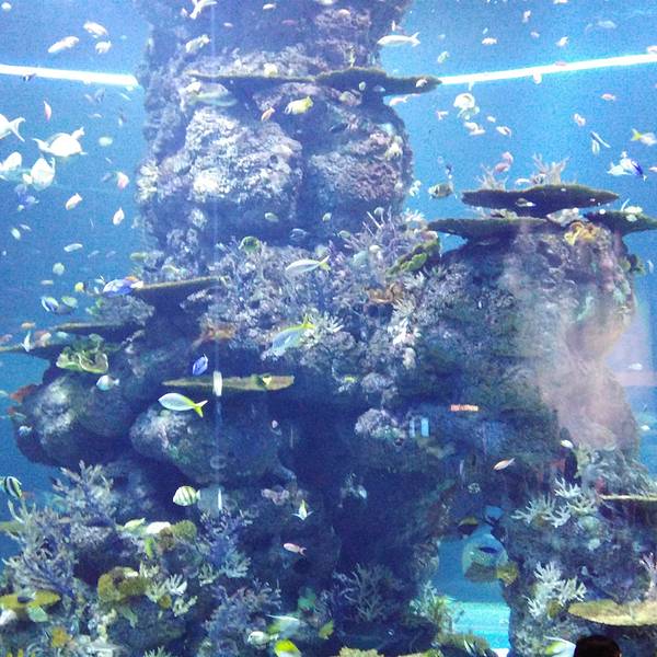 站在巨大的水族观景窗前,与鬼蝠魟、豹纹鲨等海洋生物面对面。