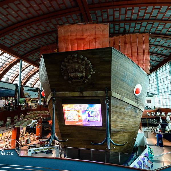 可以让出租车司机载您到圣淘沙名胜世界地下停车场的出租车下客地点。穿过福廊,右转到底至麦当劳处。搭乘电动扶梯上至1层,即可见海事博物馆就在小桥的正前方。S.E.A.海洋馆位于海事博物馆内。