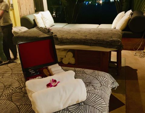 每次到泰国,都会选择他们家的Spa,体验不同的项目。普吉岛上的这家,属于半敞开式的,晚上看看夜景,微微风吹进,感觉还是不错的,只是璧虎等小虫子还是有些的。选择了岛上独有的黄金护肤项目,从沐浴到按摩,全程都是金黄色的产品,味道好闻。这里的手法不用多说,非常不错到位。选择稍轻,舒适型的,做着就慢慢入睡了。全部做完后,全身都是金闪闪的[害羞]出来喝上一杯凉茶和水果,非常满足