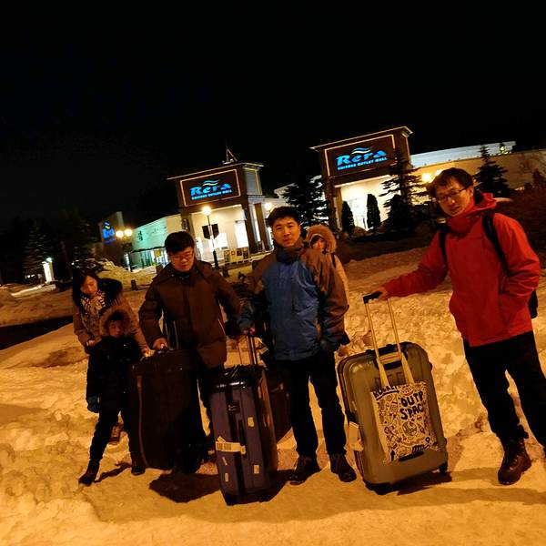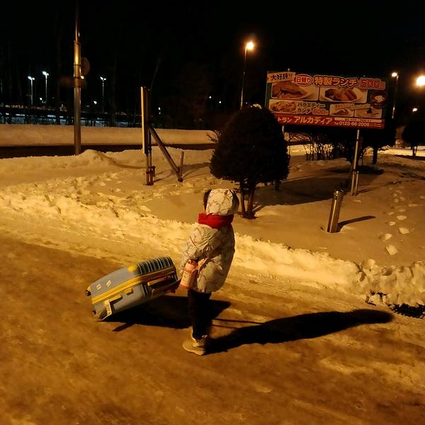 从星野到JR车站差不多10分钟不到,到站后,我们往札幌方向的站台是在对面,需要越过铁道,没有电梯,望着高高的台阶,正打算一口气提着行李走上去时。班车司机来帮忙了,他直接跳下铁道,帮我们大家的行李,一个个的搬过去,并示意我们管自己走人行桥,人走过去就可以了。 很赞的服务!