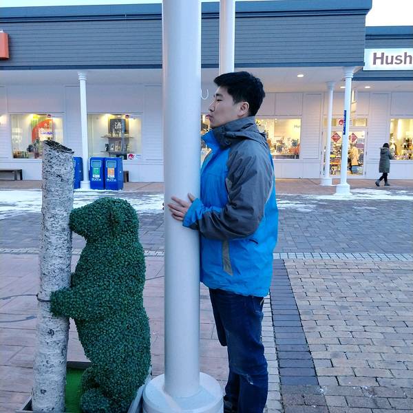在JR南千岁站,出站后去outlet 走路过程中,第一次感觉到了北海道的温度,冷。(网上都说不冷,你们还是人吗?今天是2015年3月15日,我觉得冷啊)用双眼看到了北海道的雪,很美,和在众多游记里面看到的一样,雪雪白。