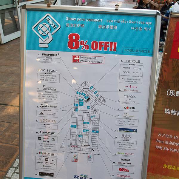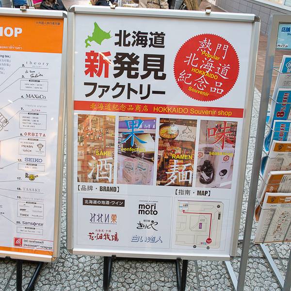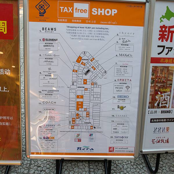 - 商城内的招牌,介绍了各个品牌门店的分布区域,免税店的位置,北海道特产店的信息