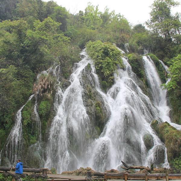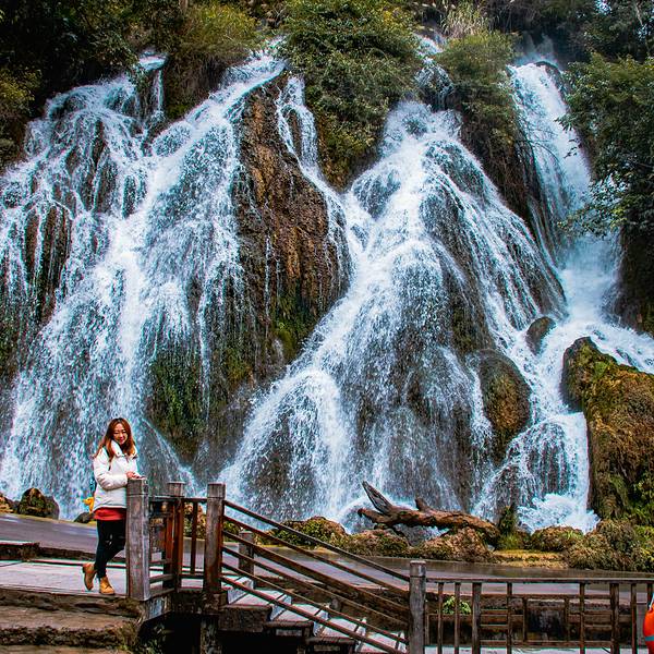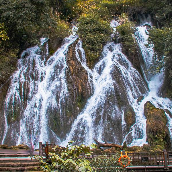 在我看来,这瀑布好像是 中国 字:人从丛瀑宽10米,落差30米。能够超近距离亲密接触的瀑布,