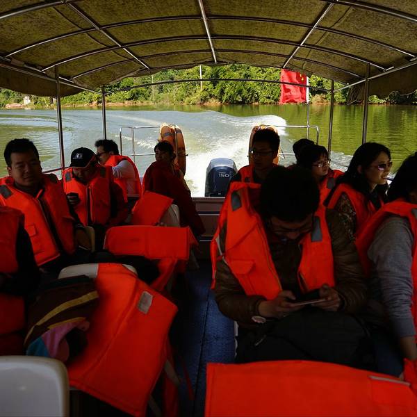 在足行天下定了望天树景区的套票:景区观光票+单程南腊河游船观光+空中走廊+单程交通车,网上预订的票价比直接到景区买便宜30元\人。虽然大家都说进景区最好先做车出来再坐船,因为出景区的时候会有很多人等车,而且车次不多,会造成拥堵状况,可是在我们好不容易颠车到达景区门口的时候,早就把这些忘的一干二净了,只顾着怀抱大好风光和游船一起臭美拍照。而事后事实证明,先坐车后坐船果然才是最明智的! 展开