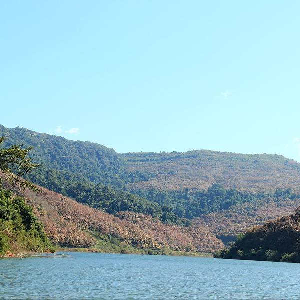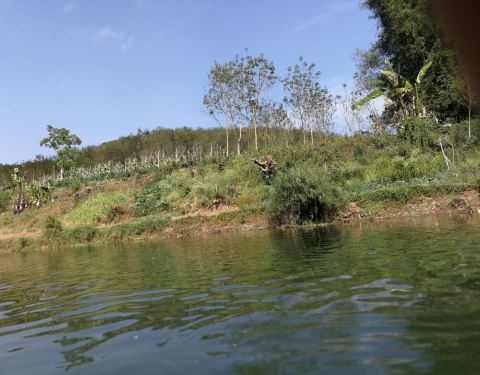 从望天树出来,咱们便坐船游了南腊河。漫山的橡胶树都是金灿灿的!