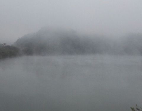 早晨湖面上雾气沼沼的,以为是仙境,太漂亮了。