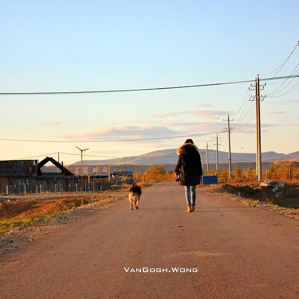 时间就像流水破冰的声音,咕噜咕噜就流走了。我们一路上采风采景。来到了白鹿岛,在那里遇到了王明来自满洲里的老乡,在他的蒙古包里亲自下厨,他逗趣的说今天你们可是幸运了我这一五星级饭店的厨师给你们煮一顿白菜炖豆腐。边煮边唠家常,说他是家里地位i还不如他们家金毛的,逗得大家欢喜一片。北方的汉子就是自带喜感。生人都能聊成铁哥们一样。一顿相对简单的午餐后,小休憩后,我们向最终的目的地出发,奇乾村,中国边境地。也是蒙古祖先崛起,繁衍生息的地方。这里只有八户人家,和驻军的军营,守护着我们的国土的边境。我们到这的时候,也正好碰到夕阳西下,咋咋呼呼的跑到河边,河对岸就是俄罗斯了。不一会,天空飘起丝丝小雪,我们手舞足蹈起来。静静的村庄飘着白的雪,阴霾的天空下鸽子飞翔......不知为何心里奏起朴树的白桦林的歌曲,或许这样有太多相似的东西,是那歌的灵魂一样。