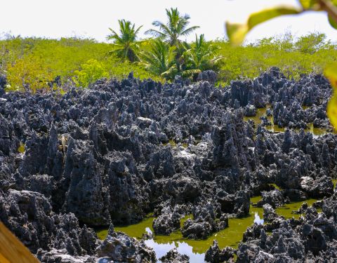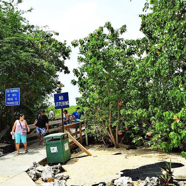 我们乘坐岛上游览车在大开曼岛游览,首先来到的是位于西湾(West Bay)附近的地狱景区(Hell),这里是海边的一片半个足球场大小的浅滩,浅滩上密布着形同礁石又奇形怪状的黑色石灰石,看上去这些古灵精怪的石头...