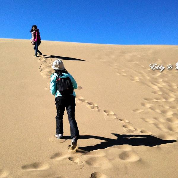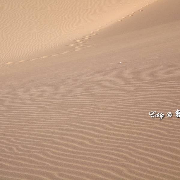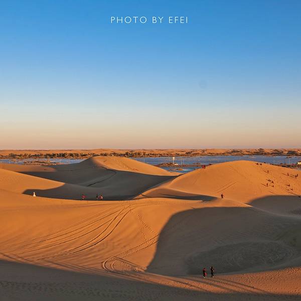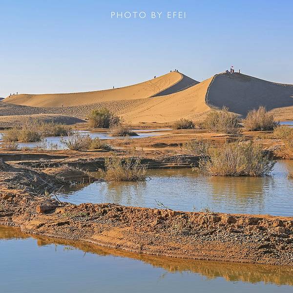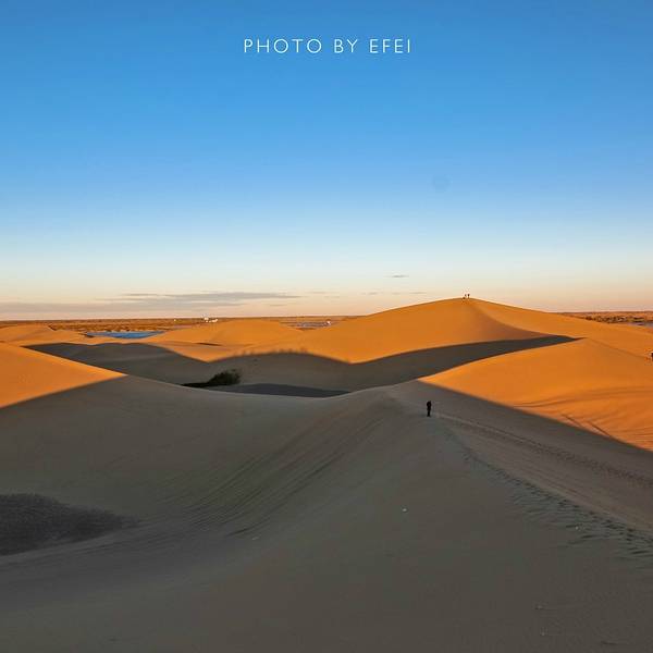 但是在八道桥景区之外,沿着沙漠的边缘稍往前...八道桥就在巴丹吉林沙漠的边缘,所以游客们一般都是去八道桥玩。但是人多了,单人照总能拍成合影。而且原本平坦的沙丘早已经被踩满了各种脚印,沙丘的质感丧失殆尽。