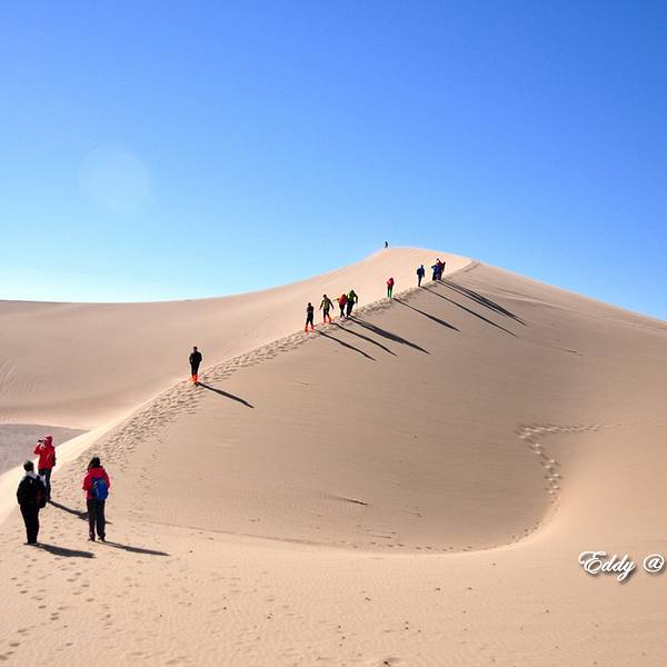 每个沙丘上都站满了人,我们只好往后面比较远的沙丘奔去,好在功夫不负有心人,这边人比较少,而且风景很美从四道桥景区出来已经是下午5点了,正是去八道桥看夕阳的好时候,景区门口排满了等班车的人群,从四道桥到八道桥车程20多公里,黑车打车的话没人20,不想多花钱就只能等,我们等了5、6趟班车才坐上。到达八道桥景...从四道桥景区出来已经是下午5点了,正是去八道桥看夕阳的好时候,景区门口排满了等班车的人群,从四道桥到八道桥车程20多公里,黑车打车的话没人20,不想多花钱就只能等,我们等了5、6趟班车才坐上。到达八道桥景区,第一次见到沙漠,并没有特别的感觉,因为人实在是太多了,黄金粥害死人啊!弄得人没有一点看景的心情,每个沙丘上都站满了人,我们只好往后面比较远的沙丘奔去,好在功夫不负有心人,这边人比较少,而且风景很美。 展开