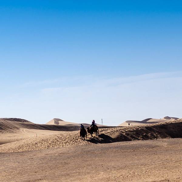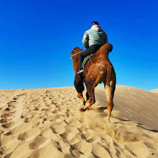 八道桥沙漠是我国第三大沙漠巴丹吉林沙漠的北缘部分,是集巴丹吉林沙漠边缘和胡杨林为一体的胡杨景观。达来呼布镇到八道桥23公里,从县城驱车半个小时就到了。这里是拍摄沙漠日出、日落的绝佳地点,是额济纳政府指定的露营所在地,也是不用深入沙漠就能体验到沙漠、绿洲风情的地方。游客可以在这里滑沙、骑骆驼,还能看到风格不一的沙雕。在这里能感受到沙漠的粗犷和壮美,日出、日落之时一片金色的沙漠,尤为出彩。此处的沙漠、胡杨、驼队和落日是摄影家的乐园。